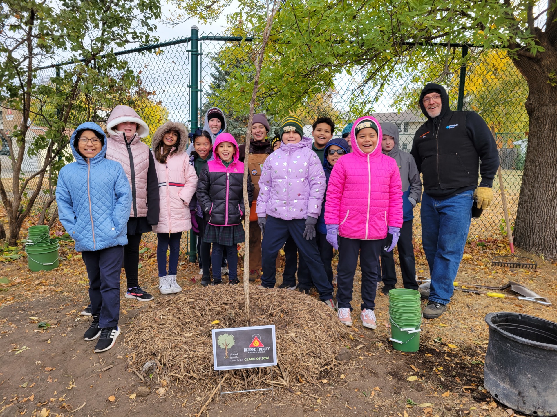 Our Serv-a-thon days were a bit cold but filled with the warmth of hope, love and generosity. These two action packed days have made quite the impact! Across the two campuses 32 trees and perennials were planted, watered, named(!) and now loved. We are so thankful for the ability to give back to our parish communities and grounds by planting these trees. I invite you to take a look around the campuses for signs that designate the class that planted the trees. We will be watering this week and next before winter. But our work is not done! We will need your help this spring and summer to water. Stay tuned for ways to be a part of our BT Green Team!